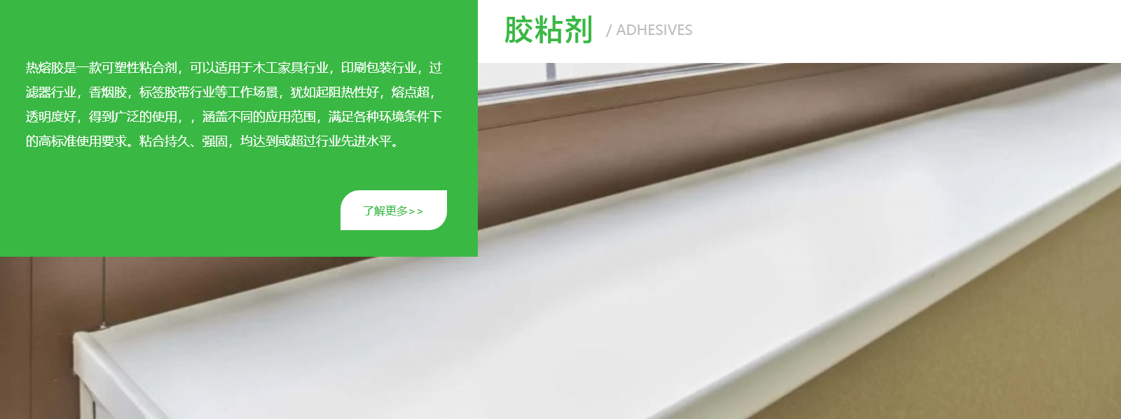 木(mù)工(gōng)膠粘劑作(zuò)為(wèi)粘≈δ&₽合、固化(huà)各種基材必不(bù)可(kě)少(<"<shǎo)的(de)配套産品,在家(jiā)居行(xíng)↔→α£業(yè)中廣泛應用(yòng),深刻影(yǐng)響著(zhe)家(jiβ•↓ā)居産品的(de)品質穩定性、環保性,成為(wèi)家(jiā♥÷↕≈)居産品中“看(kàn)不(bù)見(jiàn)”σ↔的(de)關鍵因素。